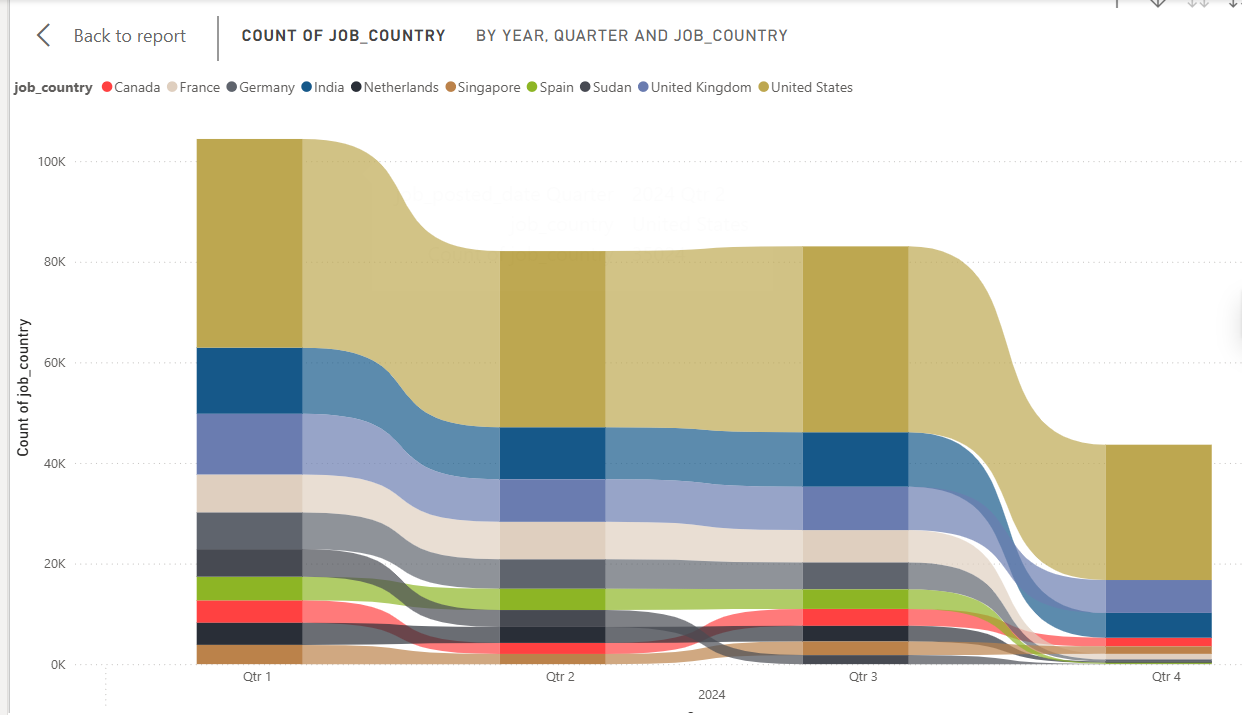 The Y-axis is the parameter we need to investigate against time . Here in this example its the countries where job postings are available (“job country”)